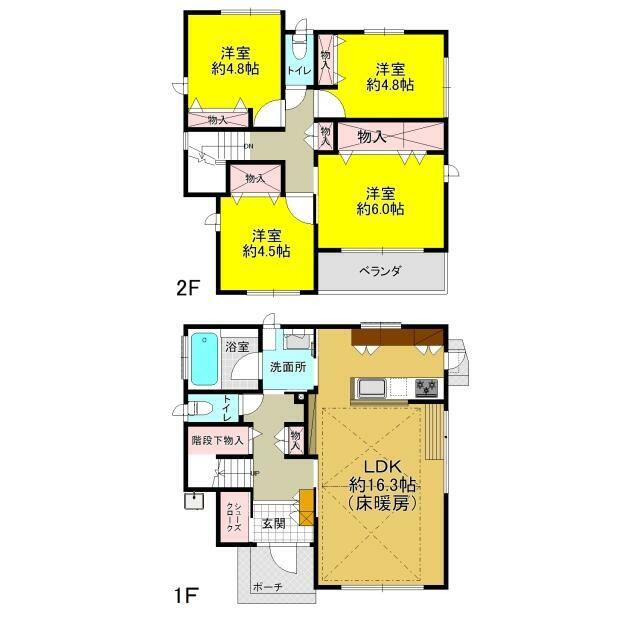 | 設備 | システムキッチン 床暖房 シューズIC クローゼット 下水道 温水洗浄便座 トイレ2ヶ所 | ||